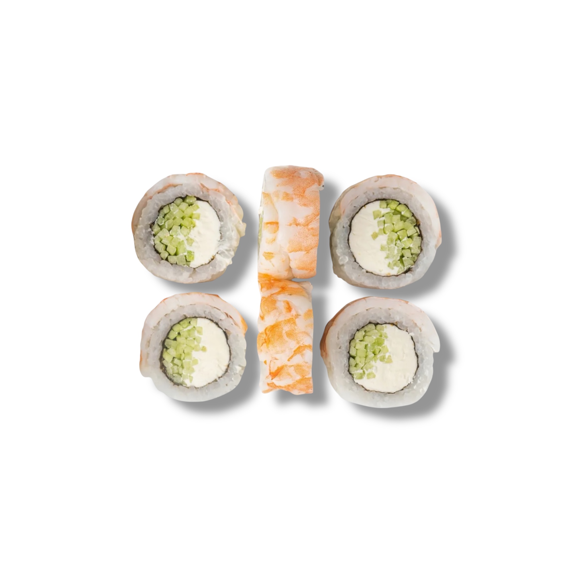 Креветка, угорь, огурец, плавленый сыр, икра масаго,