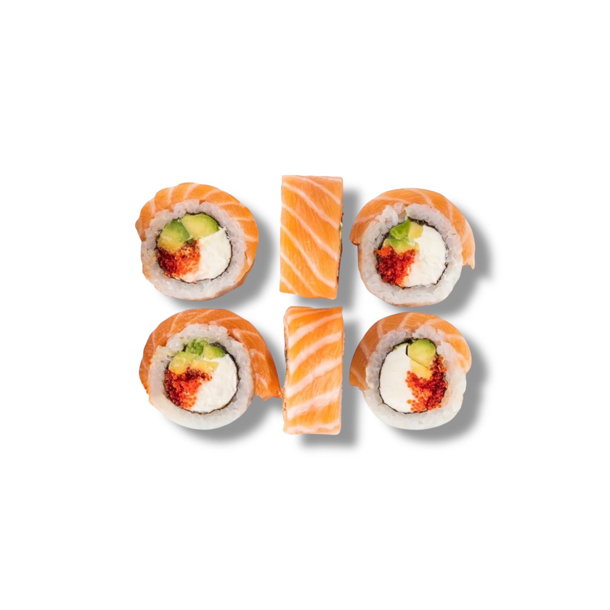 Лосось, угорь, авокадо, плавленный сыр, икра масаго,