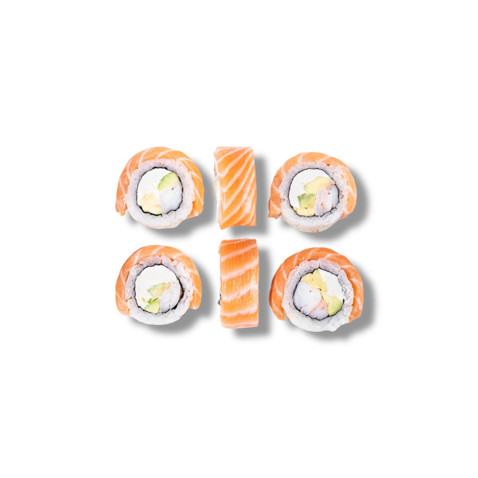 Лосось, креветка, авокадо хасс, сливочный сыр, рис, нори