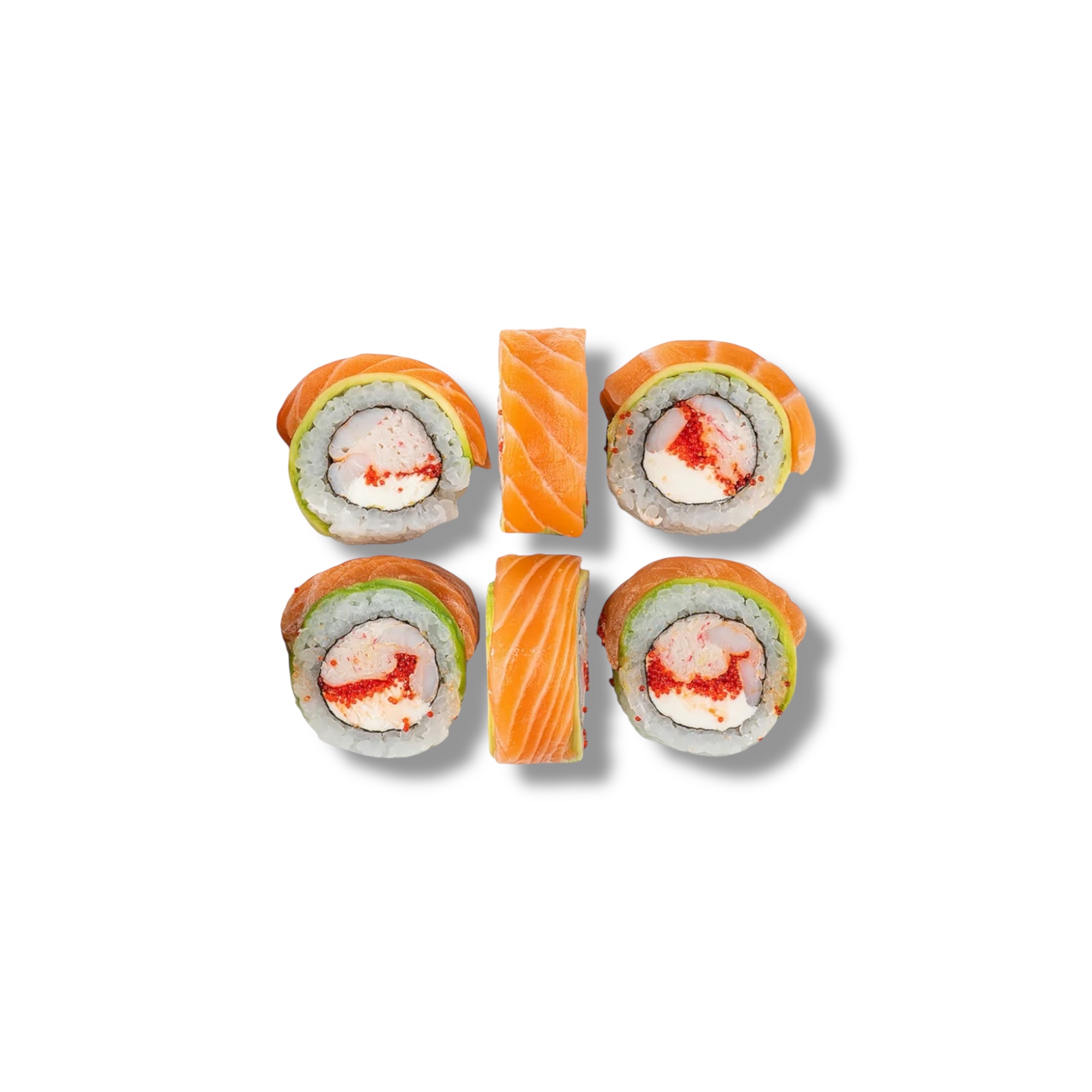 Лосось, креветка, сливочный сыр, авокадо хасс, огурец,