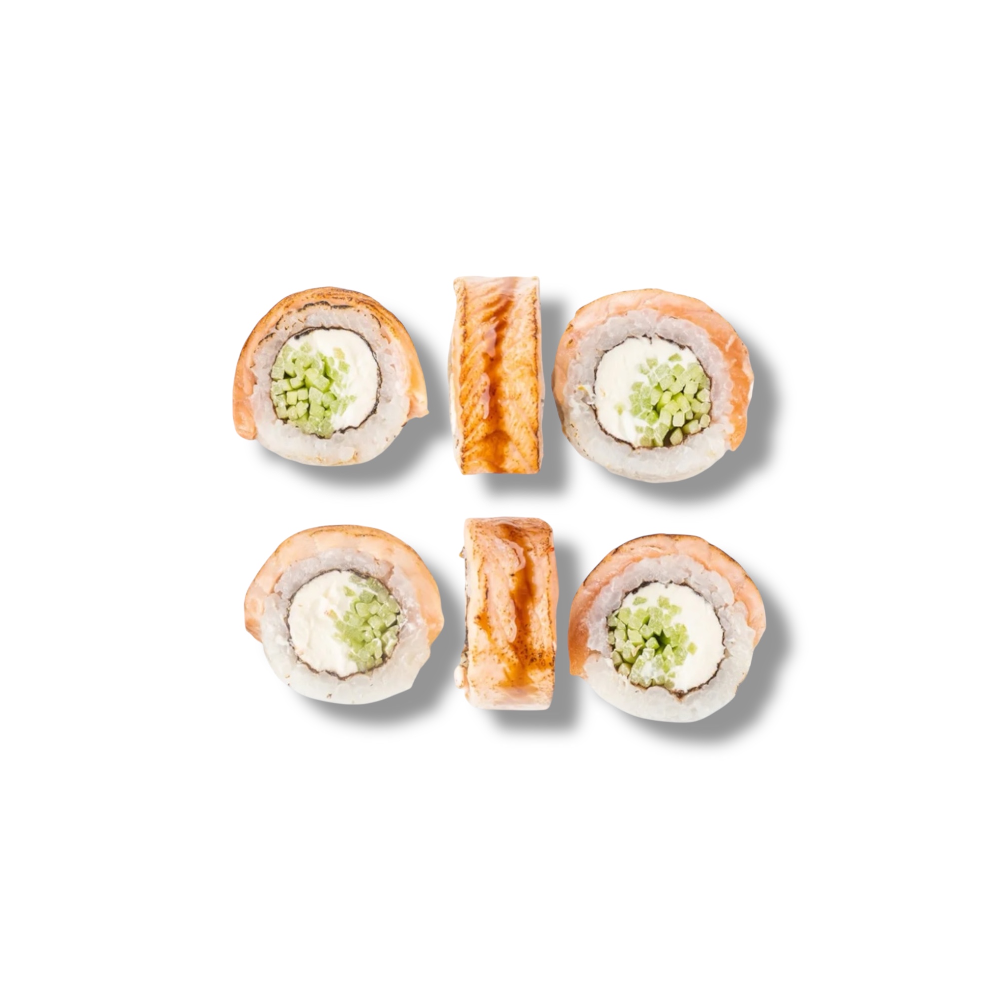 Опалённый лосось, сливочный сыр, огурец, унаги соус