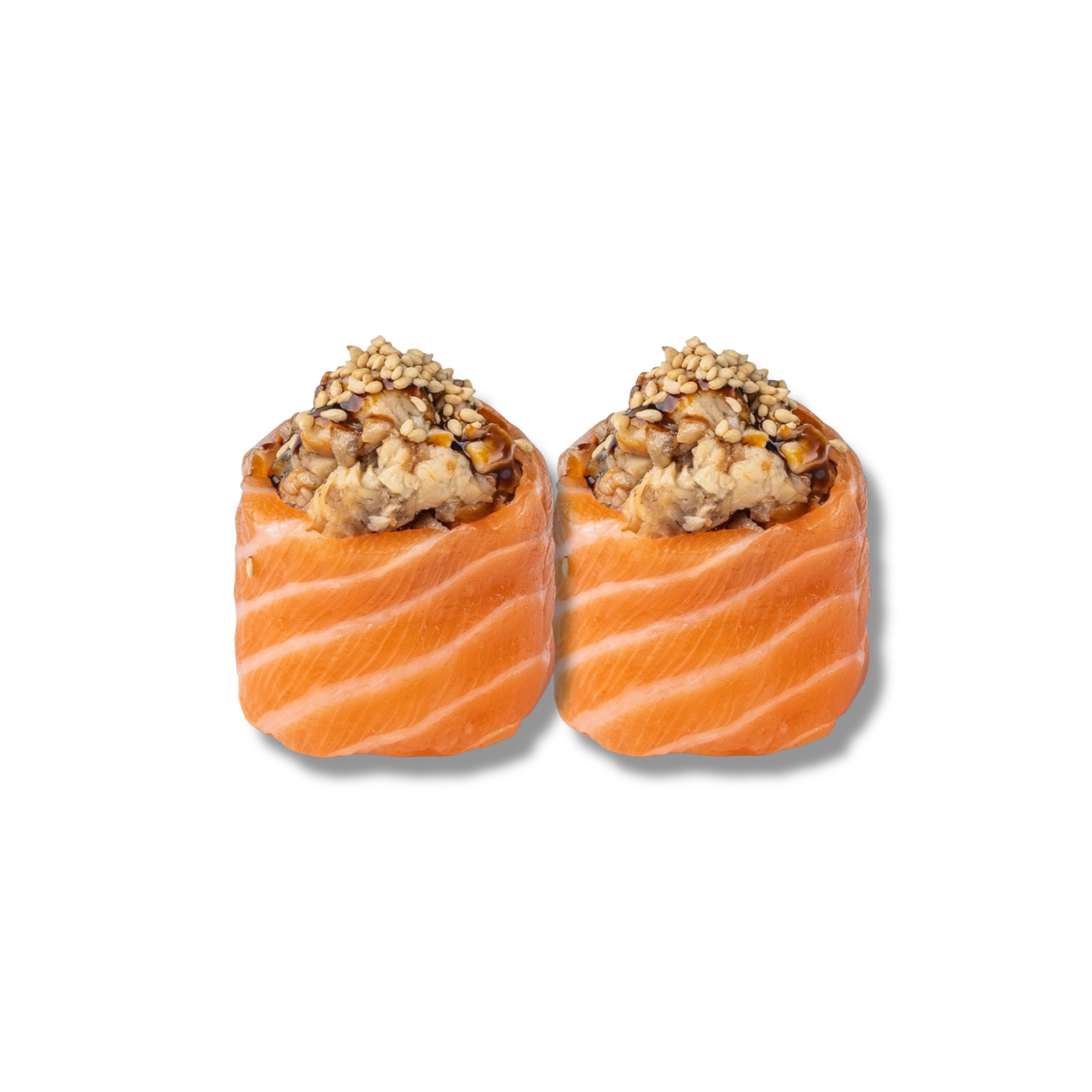 Лосось, угорь, унаги соус, кунжут, рис
