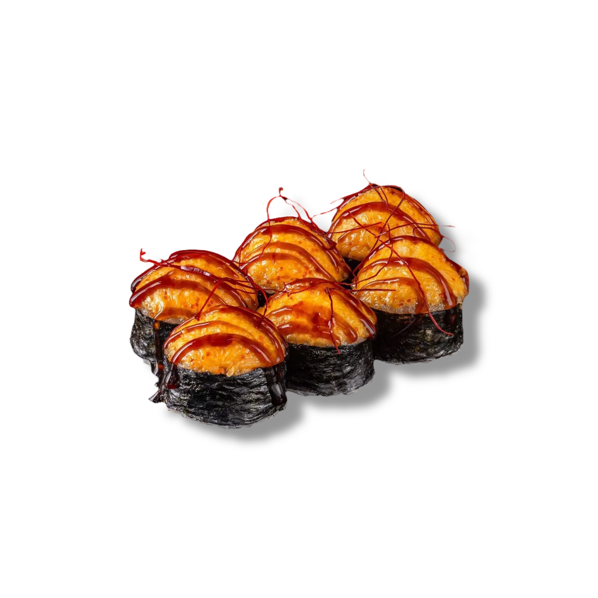 нежная запечённая шапочка, ролл полит соусом унаги, рис, нори