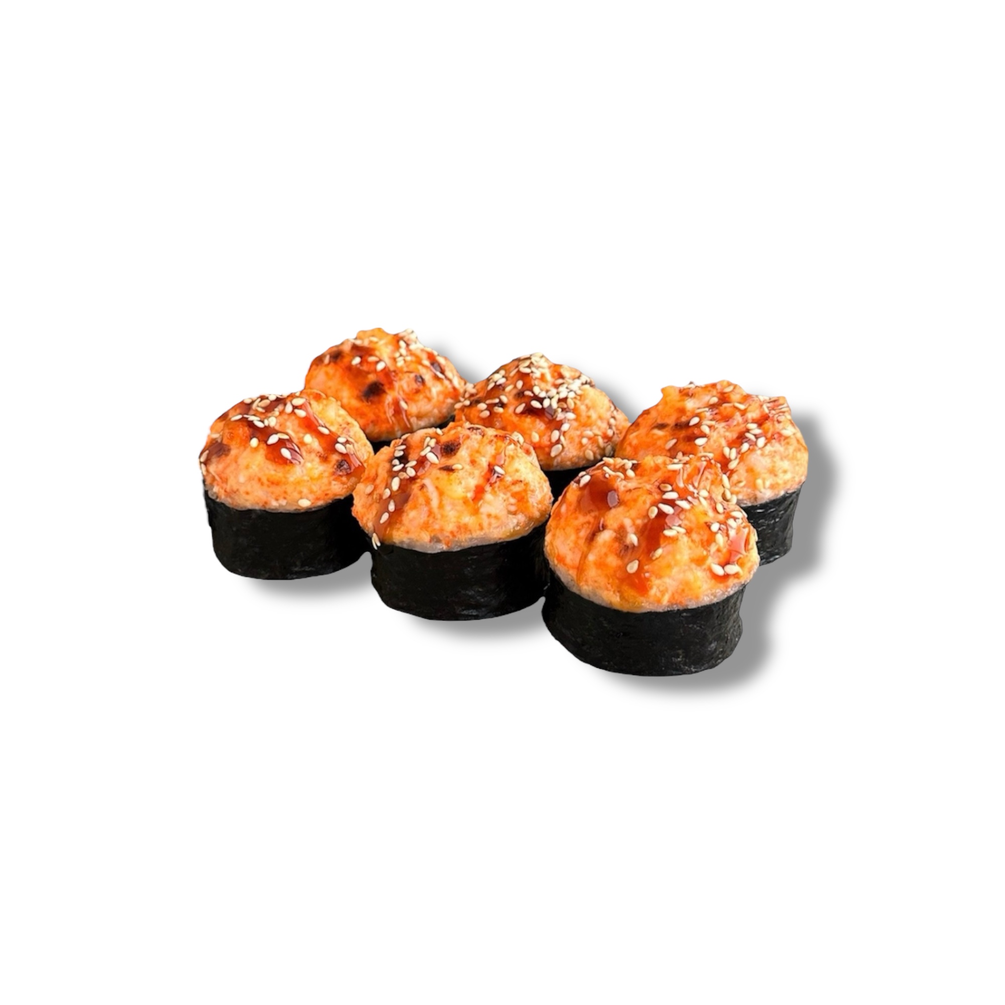 Сливочный сыр, плавленый сыр, моцарелла, креветка, нежная запечённая шапочка, унаги соус, кунжут, рис, нори