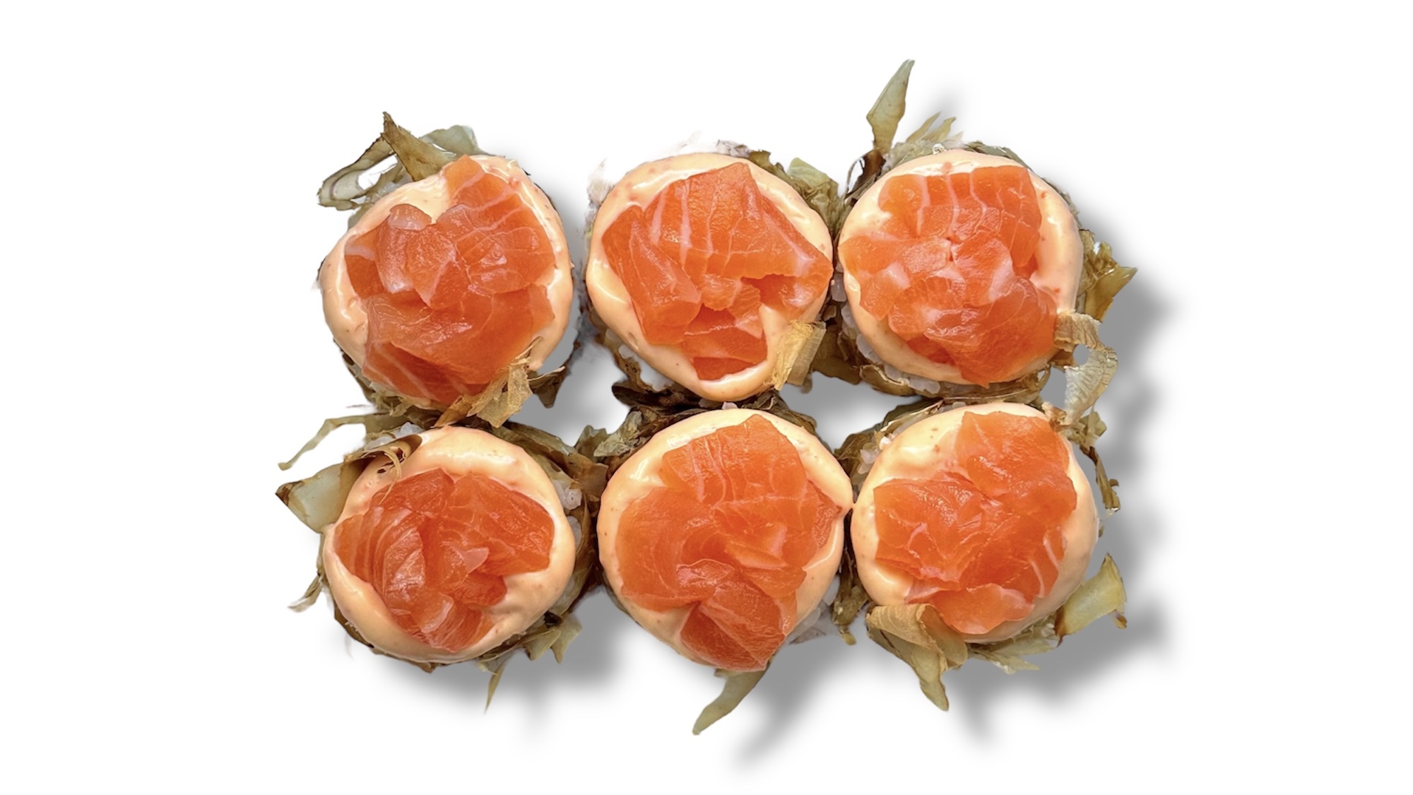 Лосось, спайси соус, спайси снежный краб, стружка тунца,