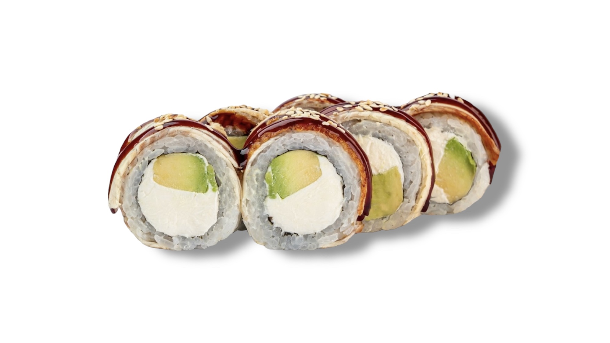 Угорь, авокадо хасс, сливочный сыр, кунжут,
